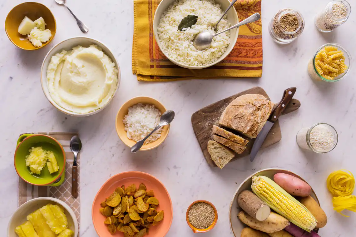 - Cereais: arroz, milho, trigo, cevada — e seus derivados (cuscuz, polenta, pão artesanal, macarrão).